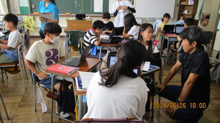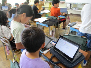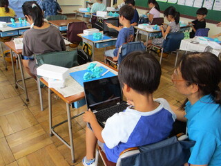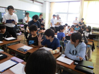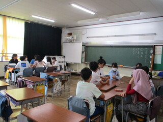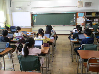 6年生は来週からの移動教室に向けて、数日前に自分の課題について事前に調べたことを、他の課題の友達にタブレットなどを使って伝え合っていました。事前学習をしておくと、実際に見たり聞いたりしたことが、よりよく理解することができます。お天気も気になるところです。今のところは雨マークが消えましたが、まだまだ心配。てるてるぼうずの効果があると嬉しいですね。久しぶりの2泊3日の宿泊行事になります。安全に気を付けて行ってきます。(校長)