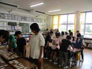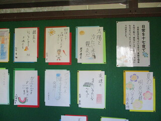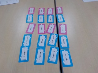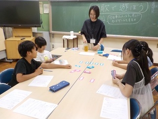 短歌作りでは、5文字・7文字の言葉が書いてある限られたカードをとっていき、また、カードを交換しながら短歌を作っていきました。できあがった短歌をみんなで披露しあいました。意図していない言葉のカードからつなぎ合わせて短歌を作る遊びがとっても楽しかったです。