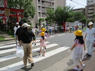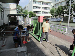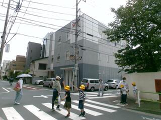 今日は,1年生が歩行訓練を行いました。警察や区の交通誘導員の方々が、横断歩道の歩き方などについて指導してくださいました。「運転手さんとアイコンタクト」「右・左・右を見る」を合言葉に、これからも安全に気を付けて過ごしてほしいです。