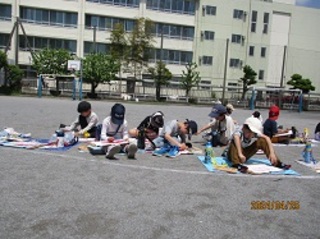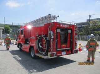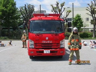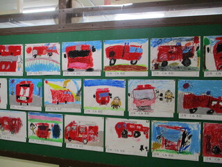 とても天気のよい中、消防写生会を行うことができました。キャンパスいっぱいにかっこいい消防士さんや消防車を描くことができました。
