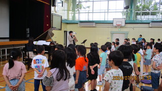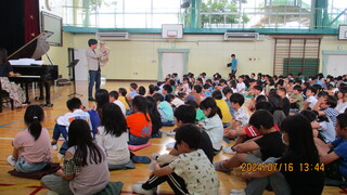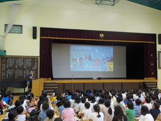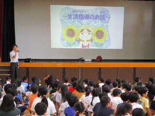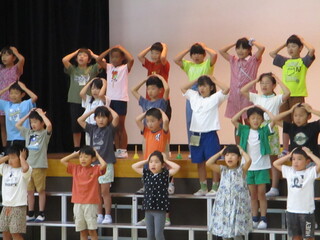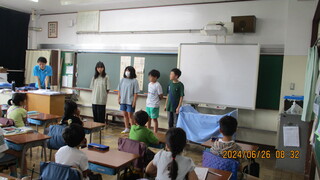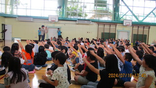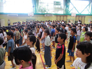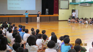 本日で1学期が終わります。終業式では、5年生の代表児童2名が、学習や委員会活動などの成果を堂々と発表しました。式後には、生活指導の先生から夏休みに安全な生活ができるように、「水難事故・交通事故・金銭トラブル」についてのお話がありました。こども一人一人が安全にそして充実した夏休みを過ごしてほしいと思います。(校長)