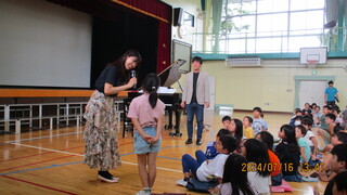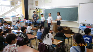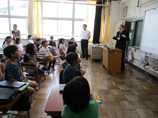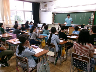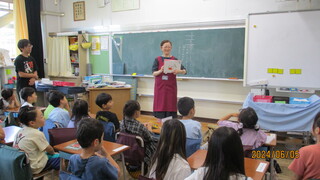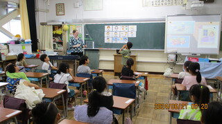 中休みにALTの先生が英語カフェを行っていました。英語カフェは参加自由の取り組みです。今日は「Snake time game」というゲームを行っていました。最初は、先生が英語でクイズを出してこどもたちが答えていましたが、慣れてきたら参加していたこどもたちが一人ずつ先生役をやっていました。自分からすすんで英語に親しむ様子がよかったです。(校長)