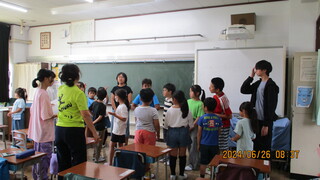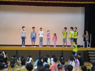 ふれあい班活動は、異学年交流を通して協力して成し遂げる喜びを味わうと共に主体的に活動する意欲を高めることをねらいとした活動です。今日は今年度のメンバーと初顔合わせ。各グループ6年生を中心に、自己紹介や活動予定の確認などを行いました。やや緊張感が高い様子でしたが、1~5年生のこどもたちは6年生の話をよく聞いていました。次回からは、どの班も遊びを通した交流が始まります。(校長)