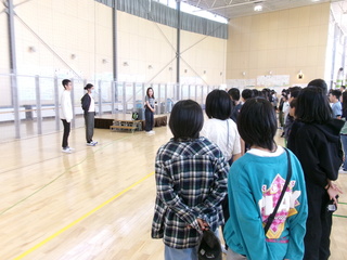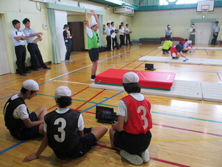 また、体育館では、ミニサッカーの講座が開かれ、得点を入れたらすぐにチーム交代を行い、たくさん汗を流しました。