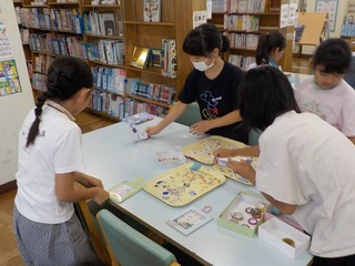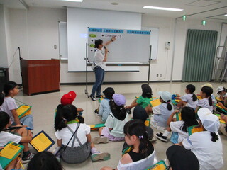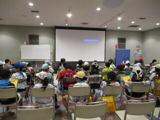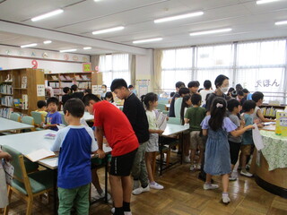 今日の「謎解き調べる学習にチャレンジ!」の講座では、蒲田図書館の職員の方々が夏休みの調べ学習の仕方を教えてくださいました。謎解きをしながら問題を一つずつクリアしていき、正解するとシールをもらいながら楽しく取り組みました。