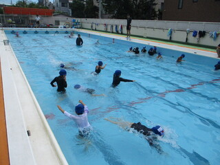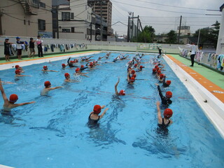 前期と後期で合計10日間予定していた夏季水泳指導ですが、本日の最終日にようやくフルで実施することができました。低学年は最初で最後の指導。楽しく活動している様子を見て、1回でも実施できてよかったと思いました。水泳指導の実施は、どうしても天気次第のところがあります。来年度の夏季水泳はどうしたものか?今から悩ましいところです。(校長)