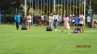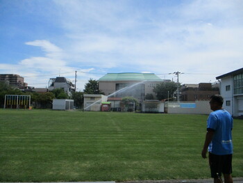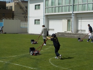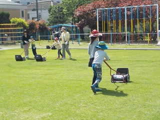 今日は、暑い中、芝刈り講習会がありました。雪印種業の方が芝刈りの説明をしてくださり、1年生と保護者、蒲田4丁目町会の方々と一緒に行いました。1年生は初めての芝刈りでしたが、とっても上手にできました。これからも、本校自慢の芝の校庭を大切にしていきます。