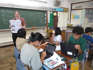 グループごとに大田区を紹介するポスターづくりを行っていました。インターネットで検索した画像や自分たちで作った英語の文章を、プリントアウトして画用紙にまとめていました。楽しみながら、英語を使った表現を学ぶことができていました。(校長)