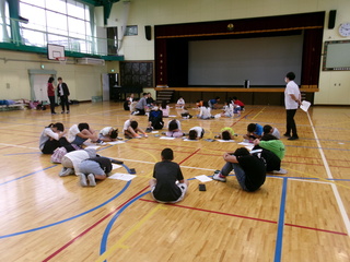 保護者も含め70名ほどが集まり、体をほぐしました。