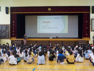今朝の全校朝会では、「運動会」について校長先生からお話がありました。「日本の運動会の始まり」「昔と今の玉入れのルールの違い」など、興味深い話を聞きました。今週末の運動会に向け、練習に力が入ります。楽しみにしていてください!