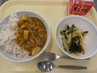 4月9日、2~6年生の給食が始まりました。進級のお祝い給食です。4月11日、1年生の給食も始まりました。給食室では、児童のみなさんに給食を好きになってもらえるよう、心をこめて手作りをしています。今年度もよろしくお願いします。