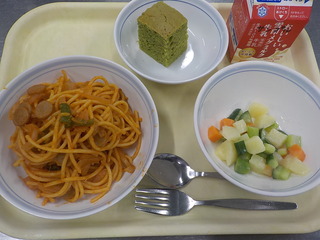 ナポリタン マセドアンサラダ 新宿しばケーキ 牛乳
