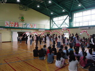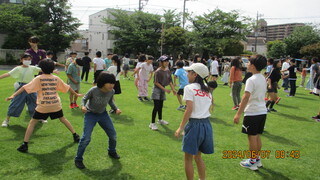中休みはふれあい班ごとに遊びました。前回は地域清掃だったので、遊びは久しぶりです。少しずつ異年齢のこども同士が一緒に遊べるようになってきました。(校長)