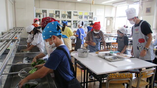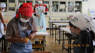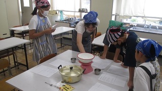 5年生は、2回目の調理実習です。じゃがいもの芽を包丁で丁寧に取ったり、青菜をきれいに洗ったりして、こどもたちはみんな真剣にそして楽しく調理実習に取り組んでいました。ぜひ、御家庭でも今日の学習の復習として、こどもに調理の時間を与えていただけると嬉しいです。(校長)