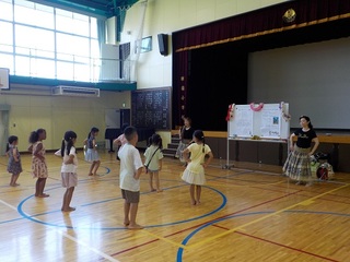 今日のわくわくサマースクールでは、保護者の方や地域の方が講師となり、「モルックで遊ぼう!」「書写・書き方教室」「新宿小 夢企画ブレイクダンスを一緒に踊ろう!」の講座が開かれました。