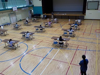 今日は、本校の体育館が準会場となり、日本漢字能力検定が行われました。3年生以上の学年の希望者が受験しました。検定会場とはいえ、いつも使っている体育館だったので、少しは安心して取り組めたと思います。
