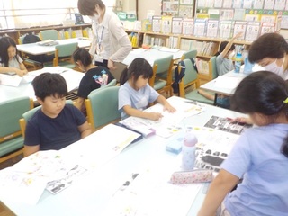 ポスターコンクールに応募したいと思っているこどもたちが、テーマを決め、それぞれの思いを絵で表現していました。夏休み明けに仕上がった作品を見るのが楽しみです。