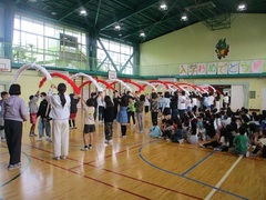 朝、体育館で行いました。