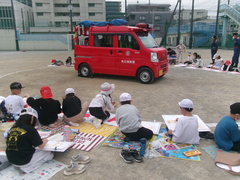 2年生は、4月15日(水)はたらく消防写生会を実施しました。大きなポンプ車や消防士さんのカッコイイ姿にこどもたちは、大興奮な様子でした。タイヤやハシゴの様子など消防車の様子を細かく観察して描くことができました。次回の図工で作品が完成します。出来上がりが楽しみです。