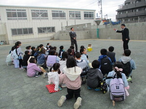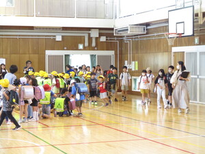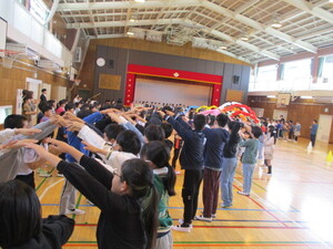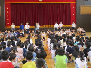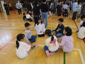 あいさつをしています。1年生50人友達た
