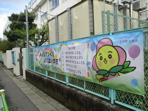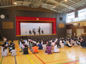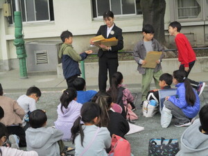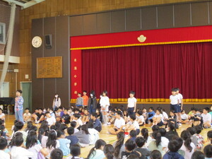 の6年生が学芸会で演じた劇を取り入れ、呼びか