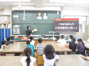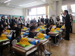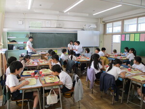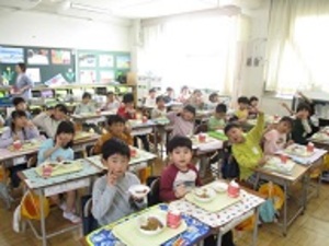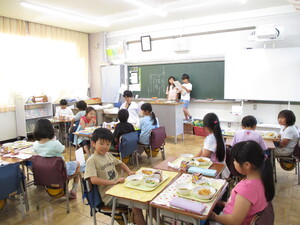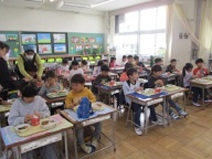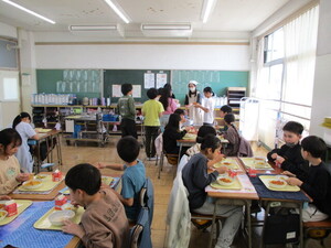 副担任の図工専科が教室に来て、一緒に食べ