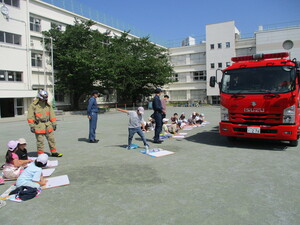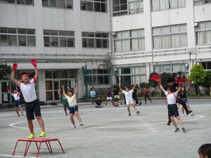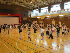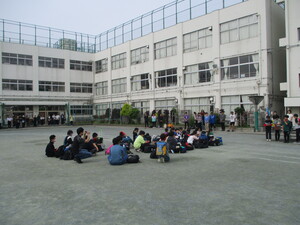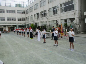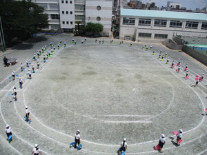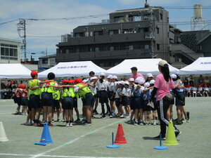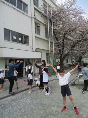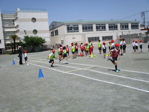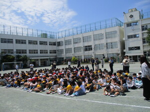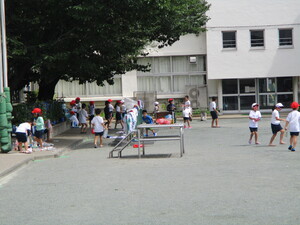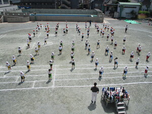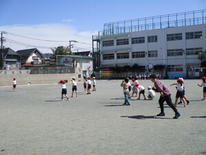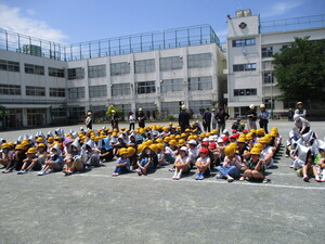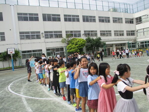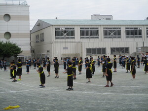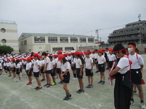 雨が降る前に、校庭で実施できました。みんな