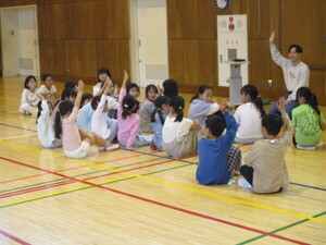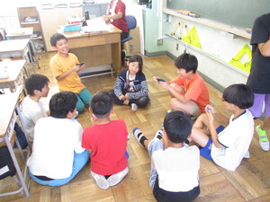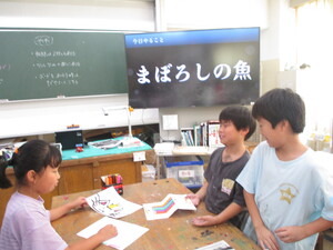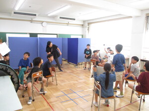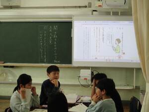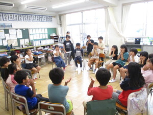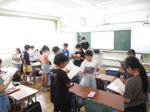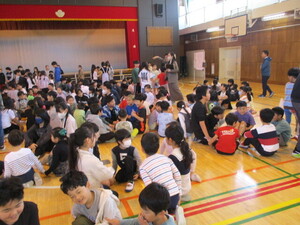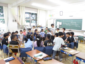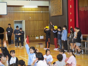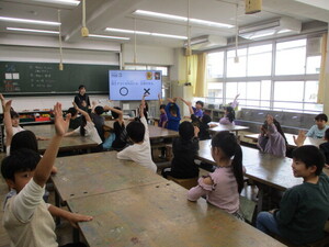 みんなの前に出て、クイズを出している子がい