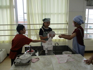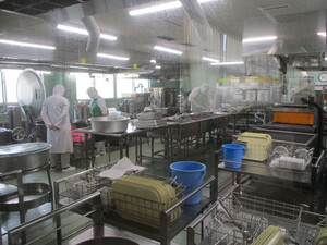 一学期最後の給食を、給食室にて作ってくだ