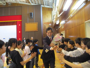 先生たちも手分けして見送ります。