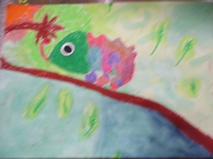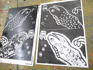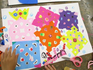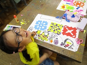 はさみを使って、貼り絵をしていました。