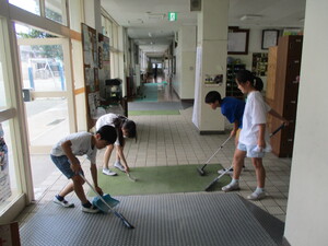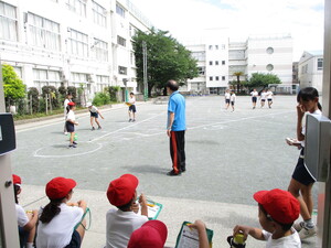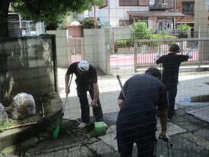 暑い中、用務員さんがいつも学校内と学校の周