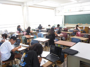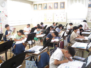 1学期のまとめテストを行っています。真剣