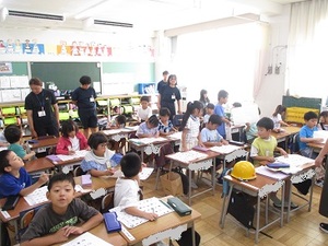 1年生が真剣に聞いています。