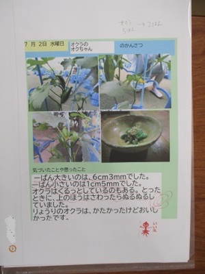 オクラに「オクちゃん」と名付けて育ててい