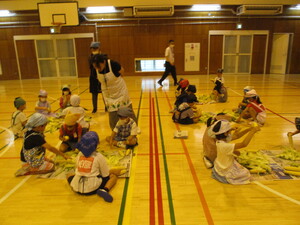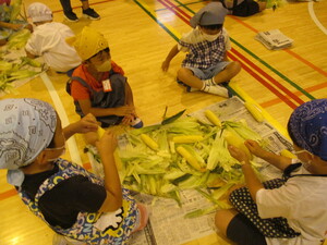 1年 生活 トウモロコシの皮むき体験