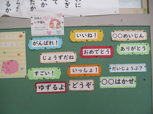 「しあわせことばんく」という掲示物があり