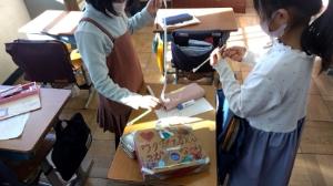 - 4年生・安方商店街の夕市で「ヘチマソープディッシュ」を販売しました(2023年2月24日)