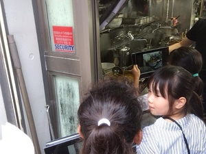 今日はいよいよ商店街の写真を撮影しに行ったのですが、お店の準備をされていた商店街会長さんの中華料理店では、「本日のおすすめメニュー」である中華風カツカレーを仕込んでいる厨房を撮影させていただける幸運にも恵まれました。「30食限定メニューだよ」「おいしそうでしょう」「俳句、楽しみにしているからね」といった子供たちへの声もかけていただきましたので、子供たちはますます写真俳句創作に力が入ることでしょう。