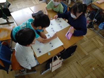 たくさんあるカードを分けていくわけですが、「これはどの部分が同じかな」「この漢字とこの漢字は同じ部分が2つあるね」というように、試行錯誤しながら考え合っていました。こうした学習過程をどの教科でも行うことで、子ども同士で学び続ける探究集団に育ってくれると喜ばしいです。