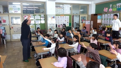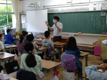 「小」「山」「正」「見」という漢字は、すべて1年生で習うやさしい漢字であるから、小山先生はやさしい先生です。さらに、「正」まさにやさしい、「見」見るからにやさしい、このようにニコニコしながら自己紹介をされたことで、子供たちの気持ちもリラックスしていきました。