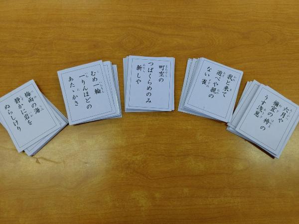 読書学習司書のN先生と、司書教諭F先生、俳句教育担当G先生の協力により、矢口小学校オリジナルの「俳句カルタ・第1編」が完成しました。