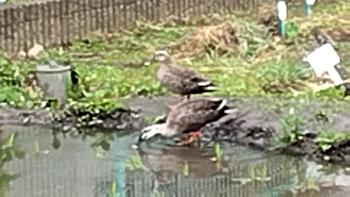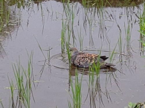 ハトやスズメが水浴びに来ることは日常茶飯事