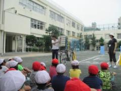 自転車を安全に正しく乗るために、区の交通安全指導員の方と池上警察署の方と勉強しました。