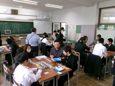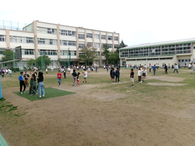 授業では、制服がまだ馴染んでいない1年生を交えて1~3学年、先生方も一緒になり、ルールを守ってゲームを楽しんでいました。