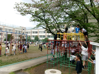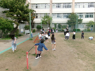 天気が良く、休み時間になると外に出て遊んでいます。