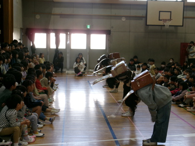 6年生が教室で迎え入れのお手伝いをしてくれたり、入学式の最後には、2年生が歓迎のアトラクションを披露してくれたりしました。